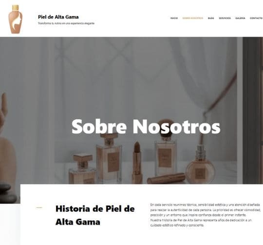 La página de inicio actúa como carta de presentación visual, destacando estilo y valores. La sección Sobre Nosotros aporta cercanía y credibilidad profesional. El apartado Servicios detalla tratamientos y especialidades de forma clara y estructurada. La Galería refuerza la imagen de marca mostrando resultados y espacios, generando confianza visual. El Blog contribuye a posicionar el proyecto como referente mediante contenido especializado. Finalmente, el área de Contacto simplifica la comunicación directa y la gestión de citas o consultas.